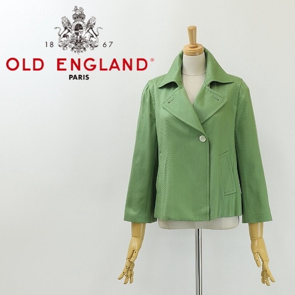 - ◆OLD ENGLAND オールド イングランド シルク 八分袖 カラー ジャケット ライトグリーン 36