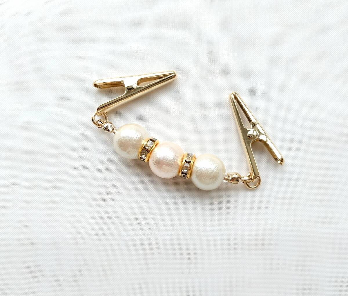 - ミニストールクリップ サーモンピンクのショートタイプ ショール留め ゴールド
