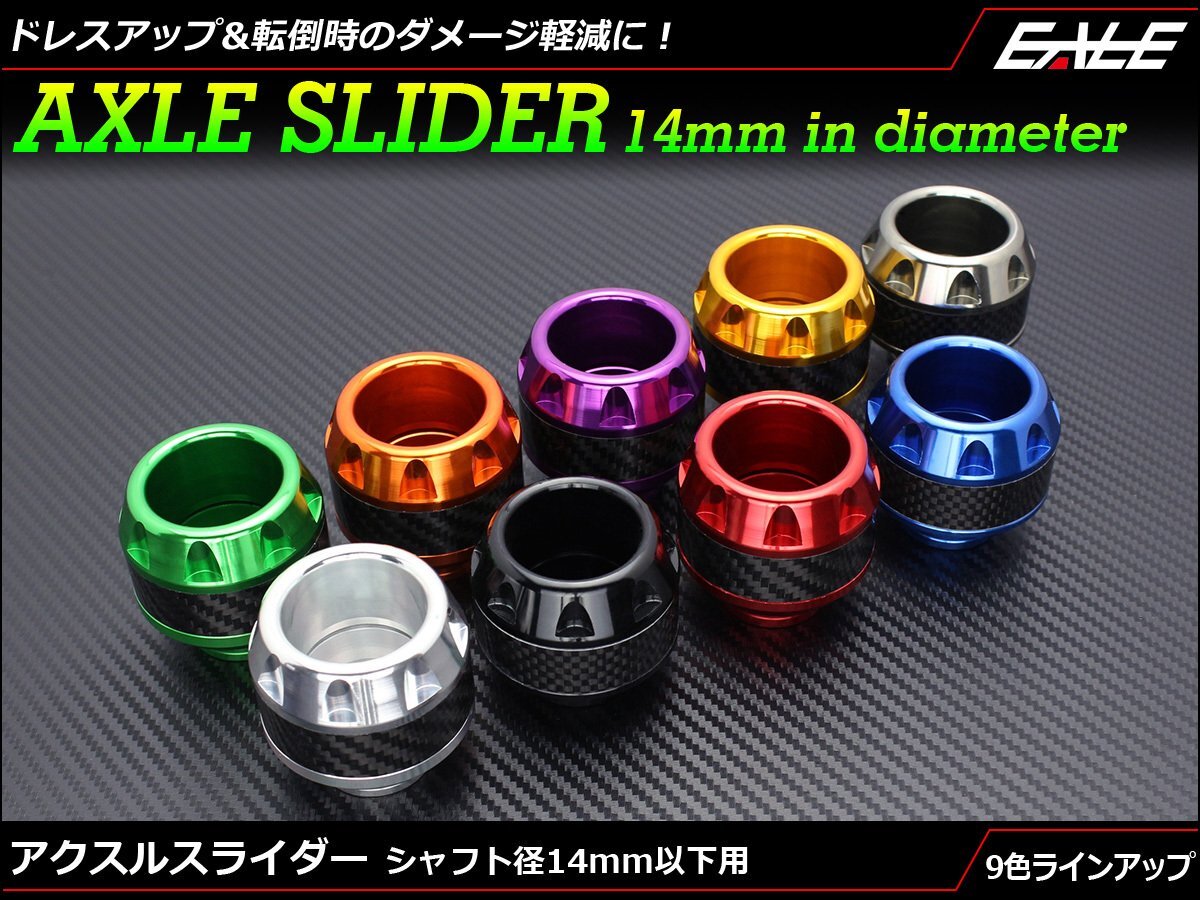 > シャフト径14mm以下用 アルミ削り出し アクスル スライダー フロント・リア兼用 ワンポイントにリアルカーボン使用 パープル S-316P