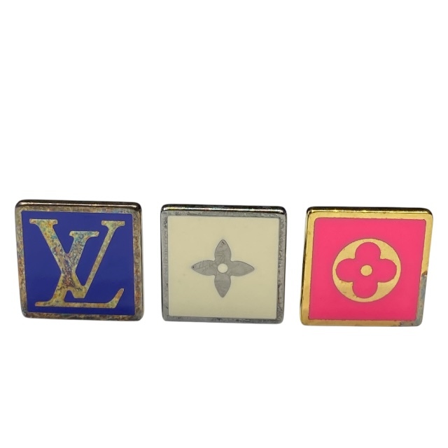 - LOUIS VUITTON ルイヴィトン 3点セット カフス カフリンクス アクセサリー 小物 ロゴ メタル マルチカラー ケース付き