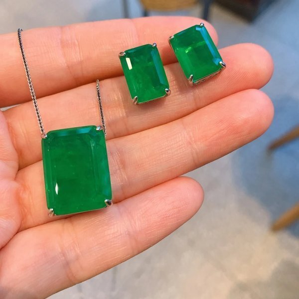 女性のための925スターリングシルバーのネックレスとピアスのセット、エメラルド
