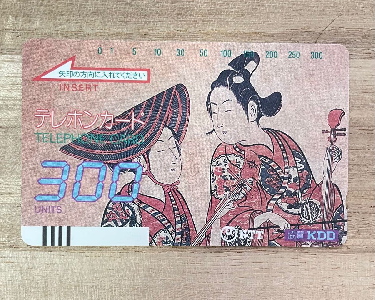 - 未使用 コレクション品 NTT 協賛 KDD 国際通話兼用カード公衆電話開始記念 テレフォンカード テレカ 石川豊信 鳥追い 300度 浮世絵