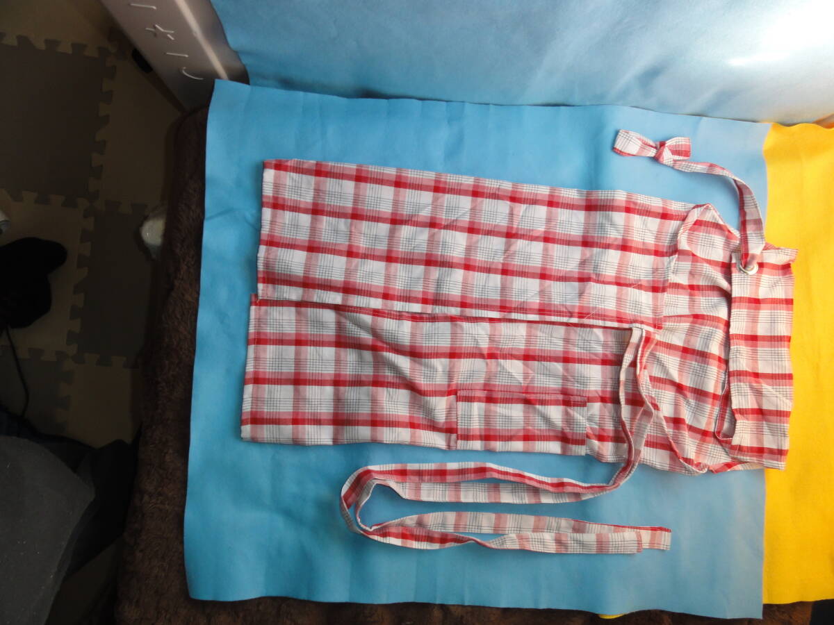 - TO-02 エプロン 赤のチェック柄 シミ・汚れ一切なし 未使用ですがタグ無し・しわがありますので リユース品として 一着