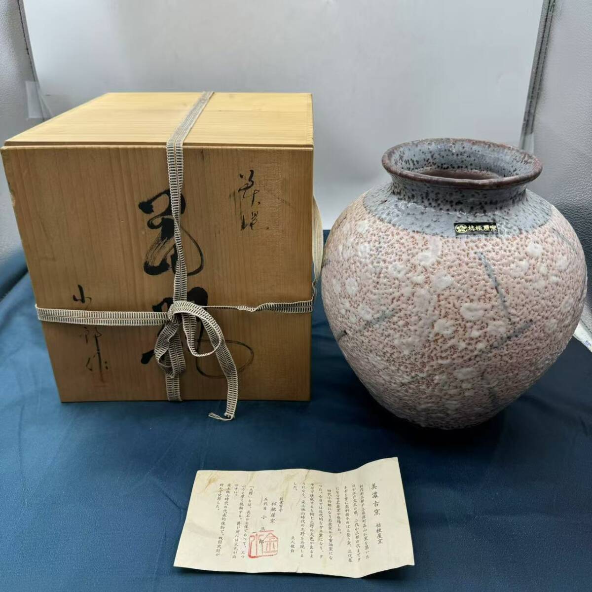 > 【未使用品】美濃古窯 桔梗屋窯 五代目 小三郎(造)花瓶 共箱 口径13㎝ 志野焼花器 花入 花生 華道具 茶道具 陶磁器