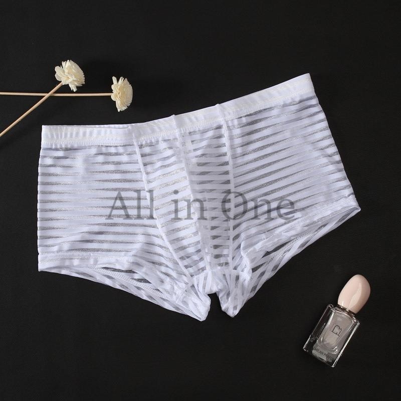 > 97-203-6 透けボーダー メンズ ボクサー パンツ 【ホワイトLサイズ】男性 下着 ショーツ セクシー インナーウェア スケスケ パンツ.2