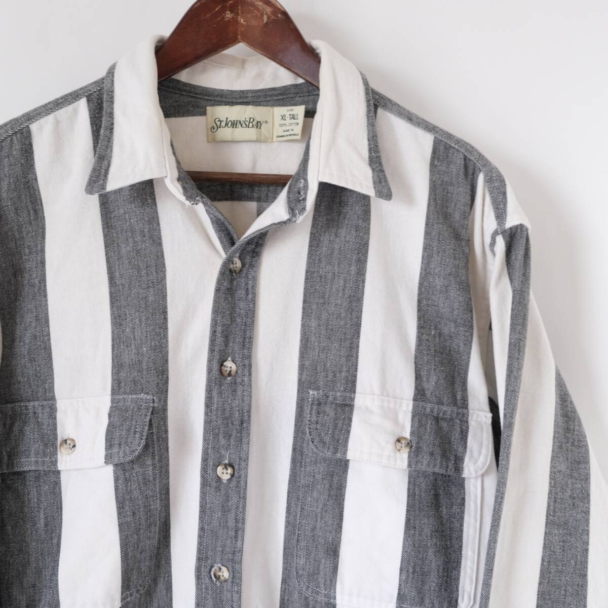 - 90s【 ST.JOHN'S BAY 】セントジョンズベイ ビンテージ 太ストライプ ネルシャツ / ホワイト ブラック 黒白系 / XL / 長袖 古着