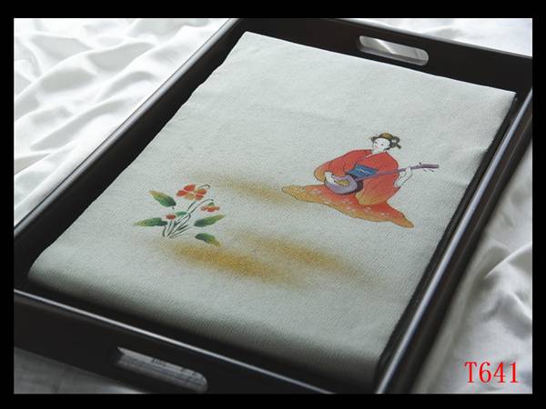 - 蔵【T641】厳選逸品 縮緬 手描き友禅染め 蕎麦切色地 気品豊かに 正絹高級美術名古屋帯 ◇検◇簪着物袋帯和装小物帯締め