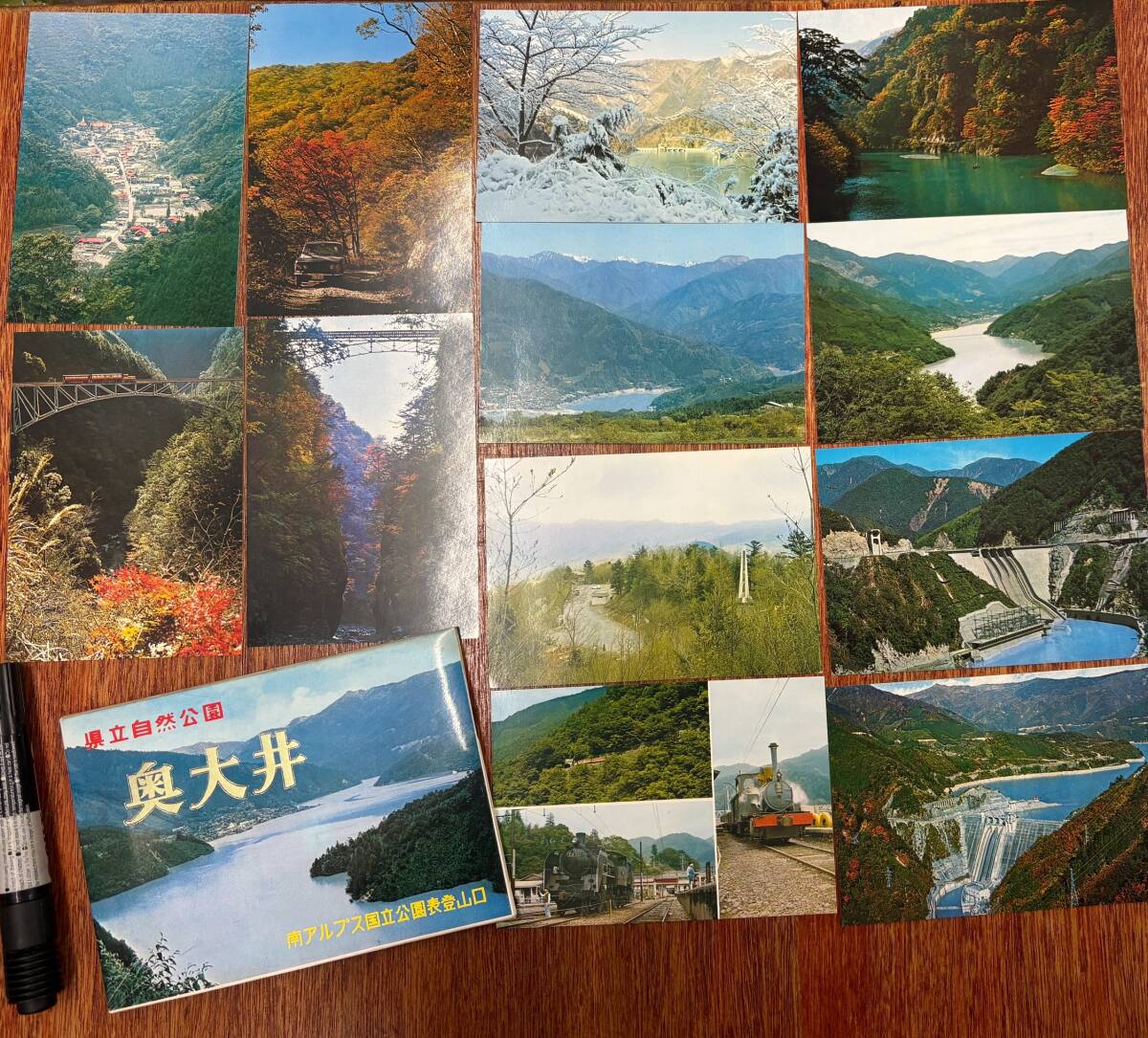 - 昔の奥大井★戦後絵葉書 袋付/12枚★井川ダム 井川湖 畑薙第一ダム 大井川鉄道 ミニ客車 寸又峡温泉 夢の吊橋 飛龍橋 他★昭和44-50年代