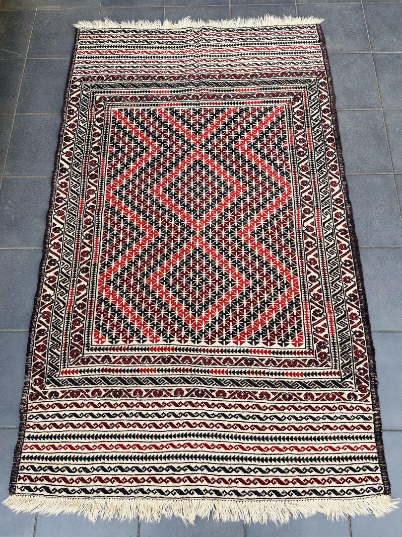 - 手織り アフガンキリム スマック織り アフガニスタン製 天然素材 絨毯 カーペット トライバルラグ ヴィンテージ ハンドメイド