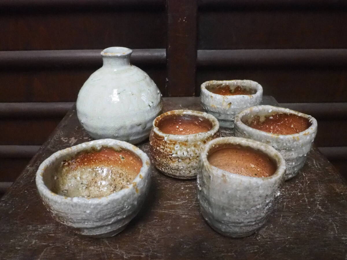 - 【焼き締め自然釉ぐい呑み5客徳利】以片口酒器和食器料亭割烹寿司屋懐石旅館民宿御造り備前信楽常滑穴窯薪窯陶芸刺身焼き物長角皿茶道華道
