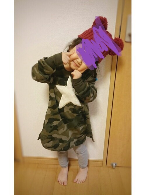 > 新品 HusHusH 裏毛ボアアップリケワンピース カーキ迷彩柄 14(140cm) 定価2750円