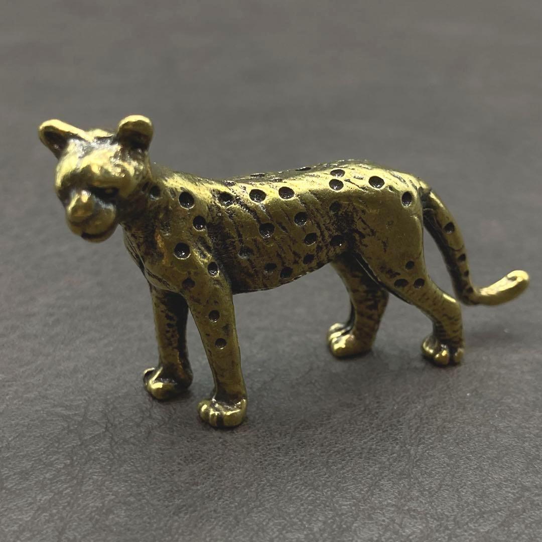 - 真鍮 置物 ビンテージ 風水 開運 金運 ヴィンテージ レトロ 真鍮製 置き物 オブジェ アンティーク ハンドメイド パーツ 動物 ヒョウ 豹 190