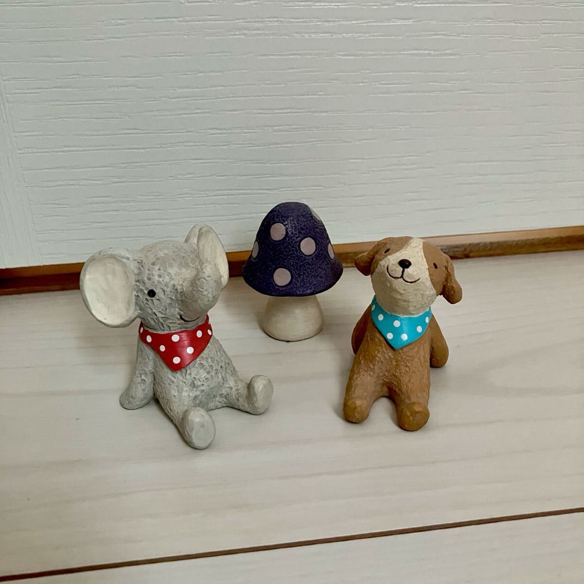 - インテリア 置物 陶器 オブジェ ゾウ いぬ きのこ