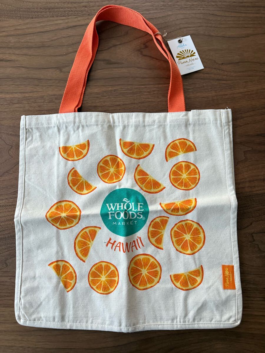 - ハワイ ホールフーズマーケット/Whole Foods Market × Puna noni フルーツ柄 トートバッグ エコバッグ 新品未使用