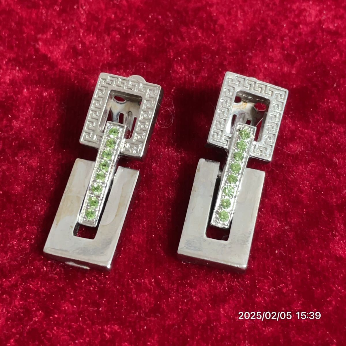 - VERSACE ジャンニ ヴェルサーチ スクエアモチーフ ラインストーン シルバーカラー イヤリング アクセサリー