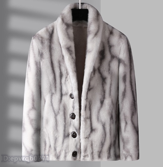 > ファーコート 新品上質 メンズ ショットコード 厚手 柄物 毛皮 フェイクファー 紳士 両面着 秋冬 アウター サイズ選択可 白/Lサイズ