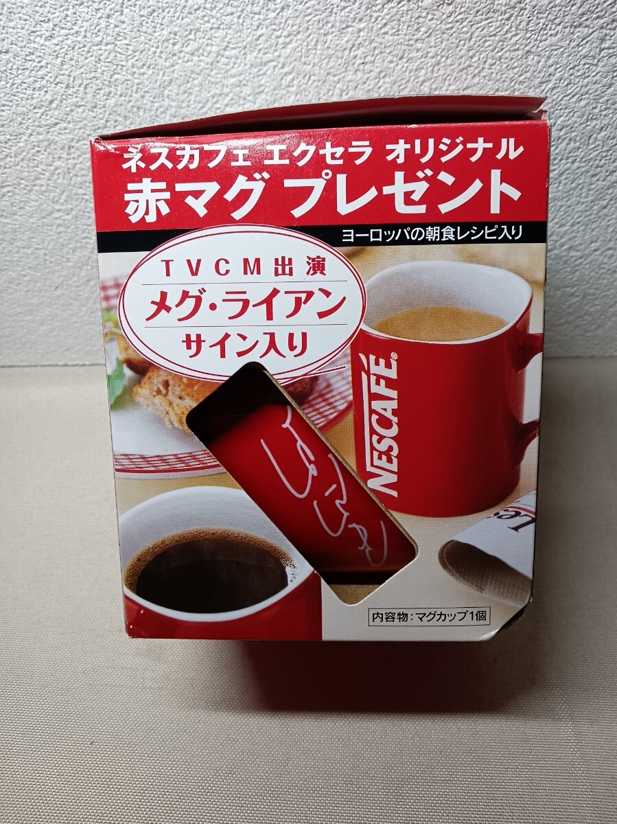 - 長期間保管品 ネスカフェ エクセラ オリジナル 赤マグ メグ・ライアンサイン入り