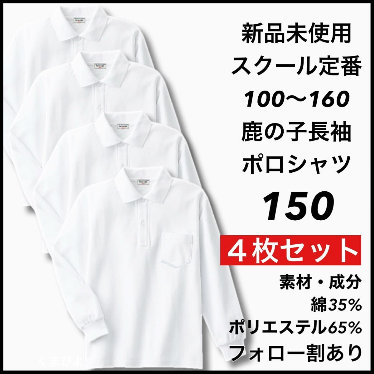 - 新品未使用 子供服 鹿の子長袖ポロシャツ スクール男女兼用 キッズ 150サイズ 4枚セット