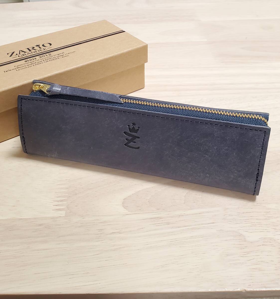 > 新品 未使用 美品 ZARIO-grandee- ペンケース 筆箱 メンズ レディース ユニセックス 革 本革 イタリアンレザー 日本製 ネイビー