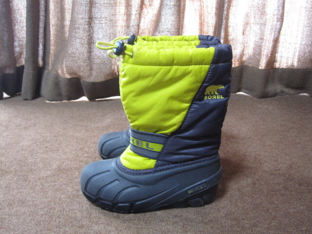 > キッズ18cm SOREL ソレル スノーブーツ ブラック×黄緑 USA13/18cm USEDキレイ アウトドア キャンプ 雪遊び