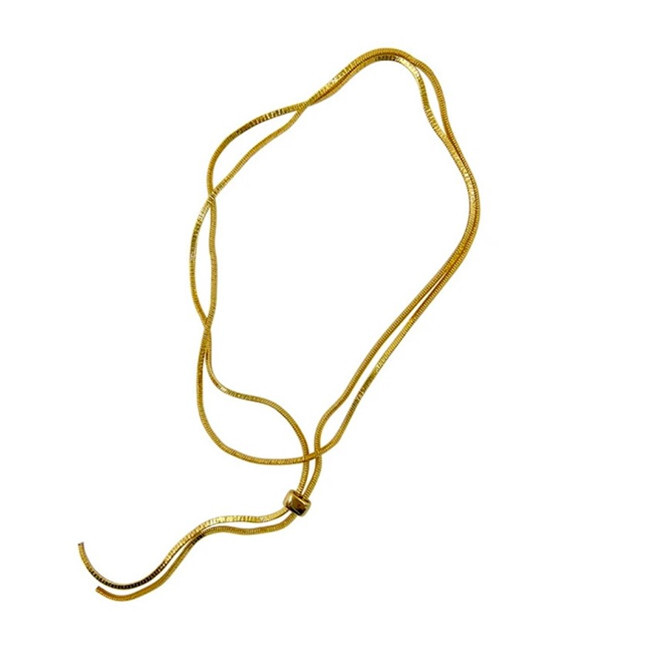 - 重ねづけ 平スネークチェーン 長さの調整が可能 ロング ネックレス 18KGF ゴールド