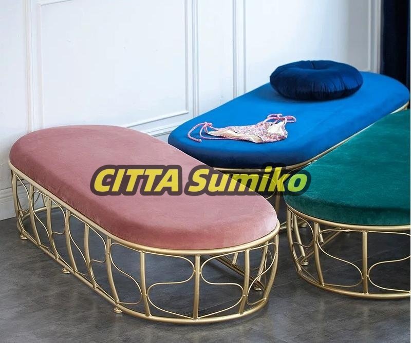 - クリエイティブなゴールデンベースのベルベットベンチ、快適な布張りの玄関靴ベンチ、ベッドの端のベンチシート(120x40x33cm)
