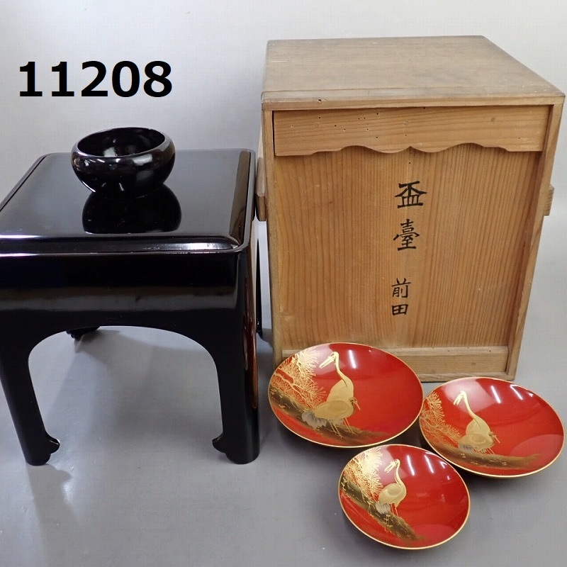 - ■FK-11208◆時代 盃台 塗蒔絵 盃 鶴蒔絵 20250213