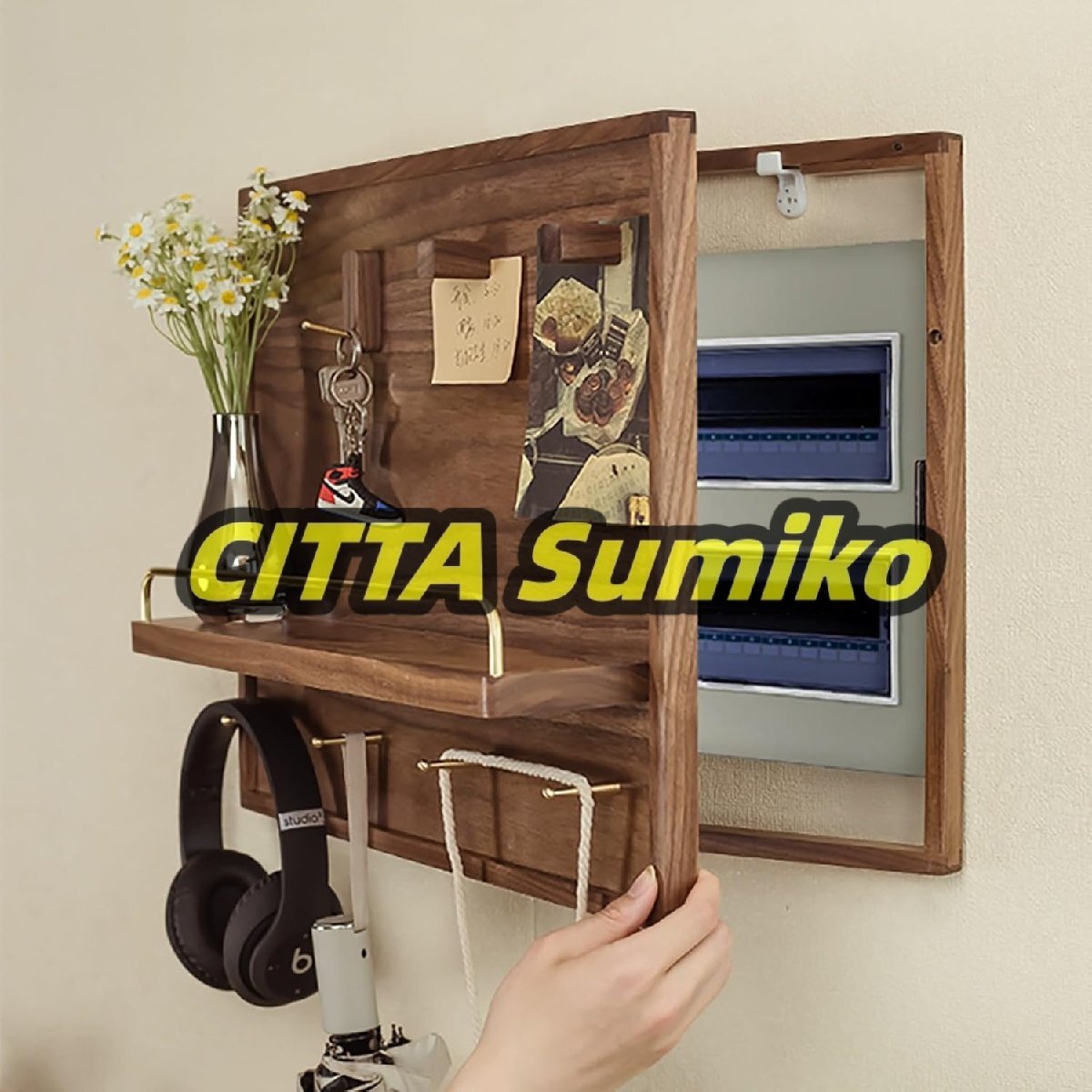 - 配電盤カバー 木製 配電ボックスカバー 無垢材ハンガー 玄関収納ラック収納 壁装飾 メーターボックス装飾