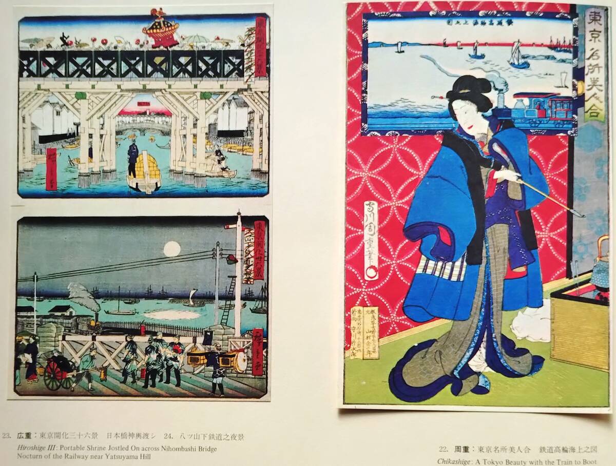 - f25021415〇明治鉄道錦絵抜粋 印刷 広重 東京開化 日本橋 鉄道高輪 明治初年〇和本古書古文書