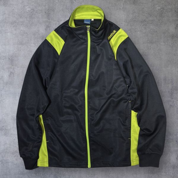 - ★Reabok★トラックジャケット ジャージ 上着 ネイビーブラック系 フルーレセント ロゴ刺繍 リーボック 古着 クリーニング プレス済み 1970