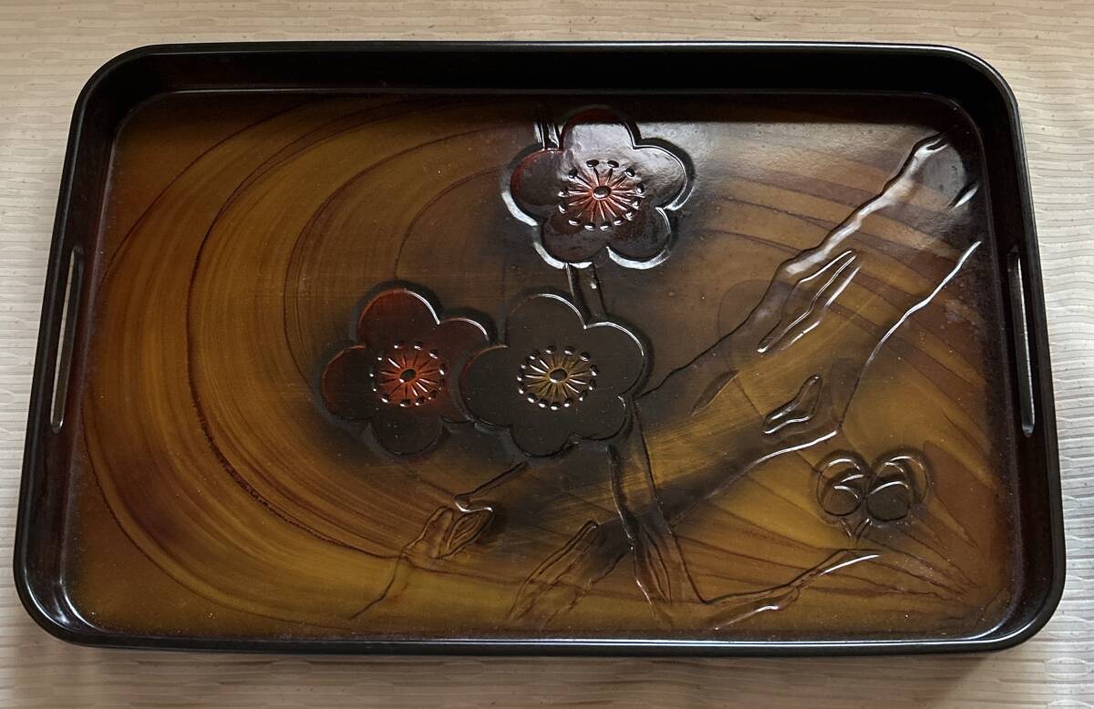 - トレイ/おぼん 木彫り風花柄 横46cm 縦31cm()()未使用品