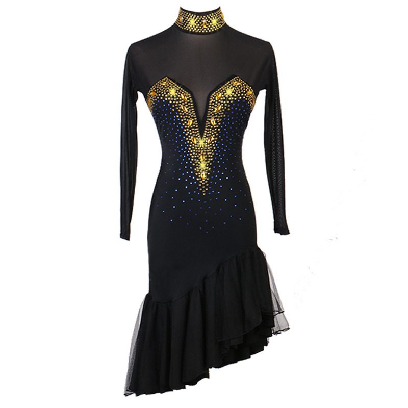 - 人気品新登場 レディース社交ダンス ラテンドレス練習試合ワンピース ダンスドレス セミオーダー可 キラキラ飾り 黒 S~XXL