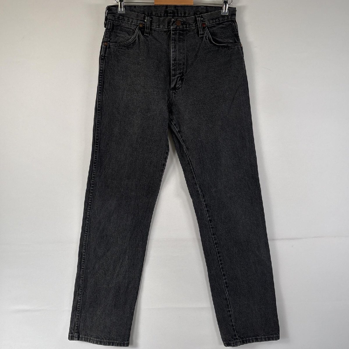 - 古着 ラングラー Wrangler USA製 デニムパンツ ワンポイントロゴ ブラックデニム ストレート ロング 先染め w32 L34 ブラック メンズ