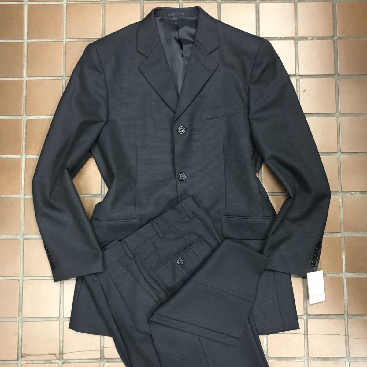 > 【新品未使用】紳士服 背広 3つボタンスーツ/LLサイズ /サイドベンツ/2タック/マイクロドット柄 黒/激安★高級 英国紳士スーツ秋冬物