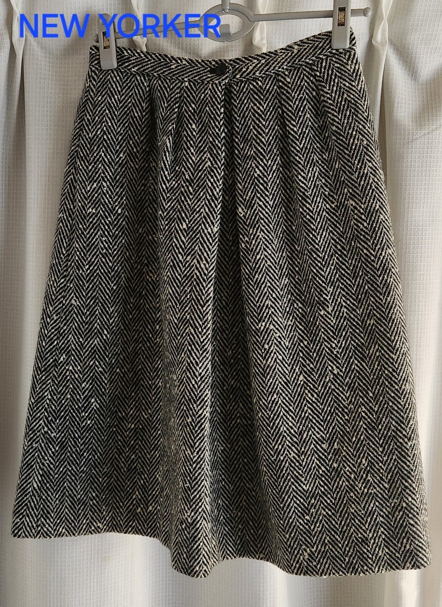 - 大変美品 NEWYORKER 厚手 ウール スカート ひざ丈 ヘリンボーン