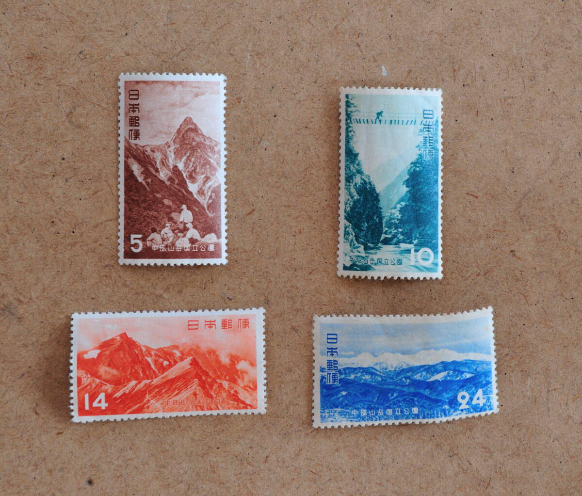 - 第1次国立公園切手・中部山岳・4種揃い・1952年発行・未使用