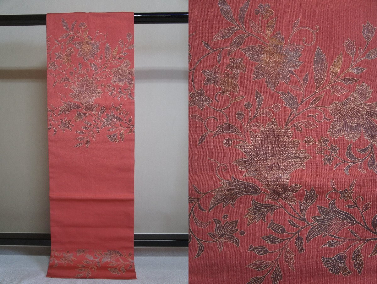 > 正絹うす紅唐色糸地唐花模様未着用名古屋帯[N15898]