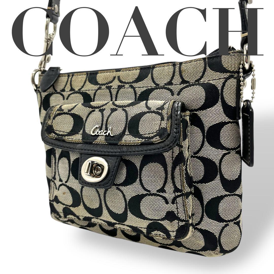 > 美品 COACH コーチ ショルダーバッグ ターンロック 黒 ブラック