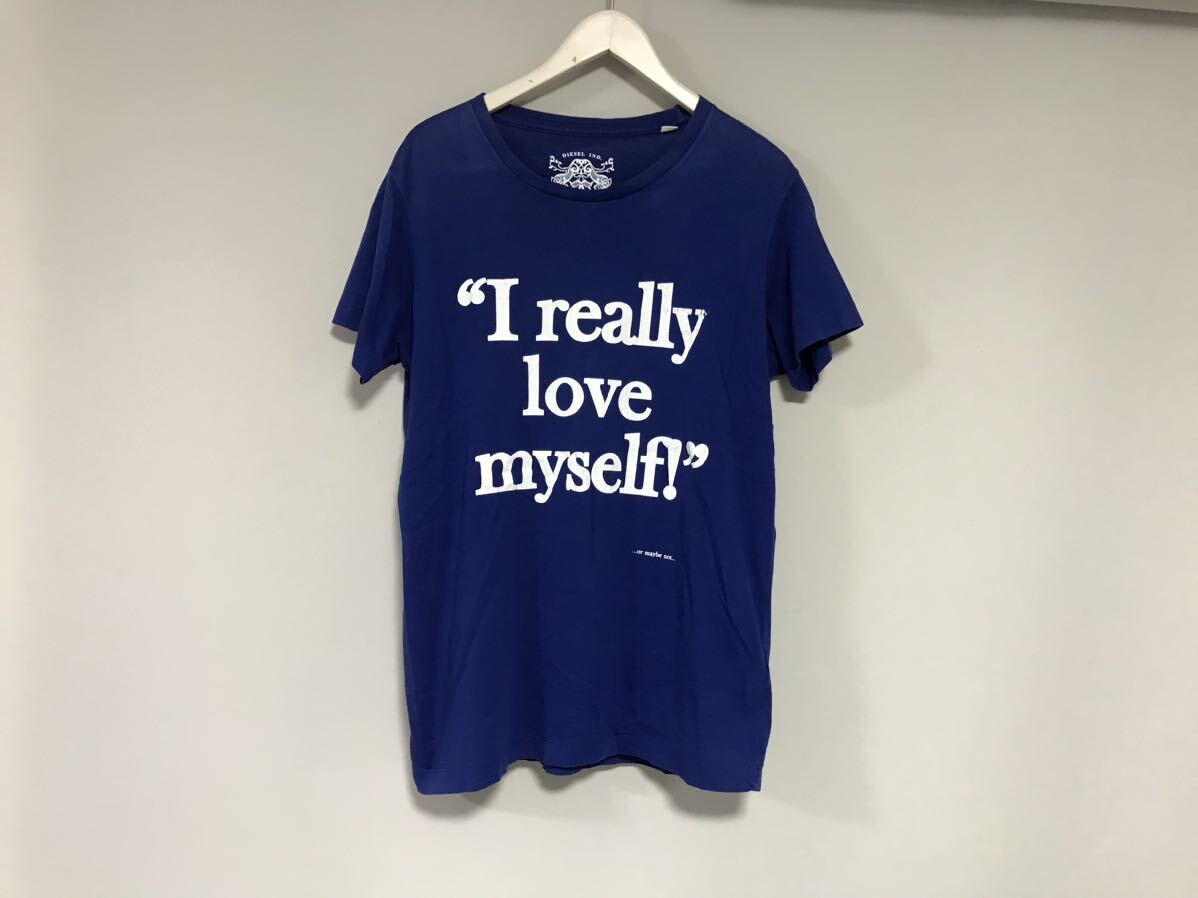 > 本物ディーゼルDIESELコットンプリント半袖Tシャツメンズサーフアメカジミリタリーワークビジネススーツ青ブルーMインド製