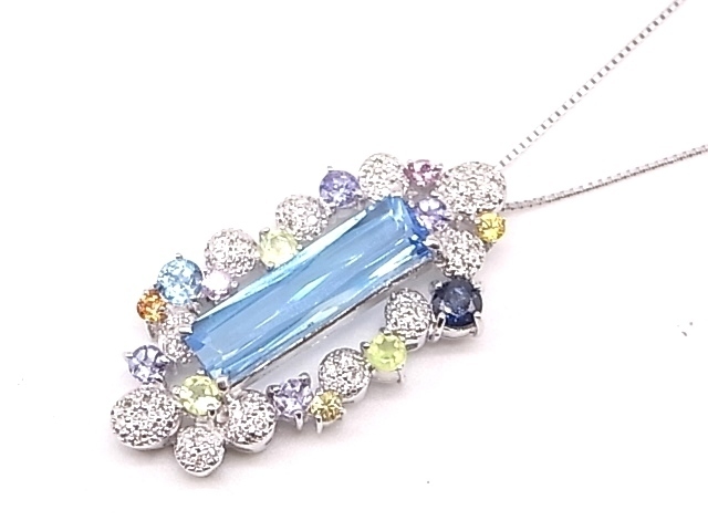 > g13585 K18WG ブルートパーズ3.90ct マルチ1.65ct D0.32ct ネックレス USED 美品 11.2g 45cm アジャスター付新品チェーン