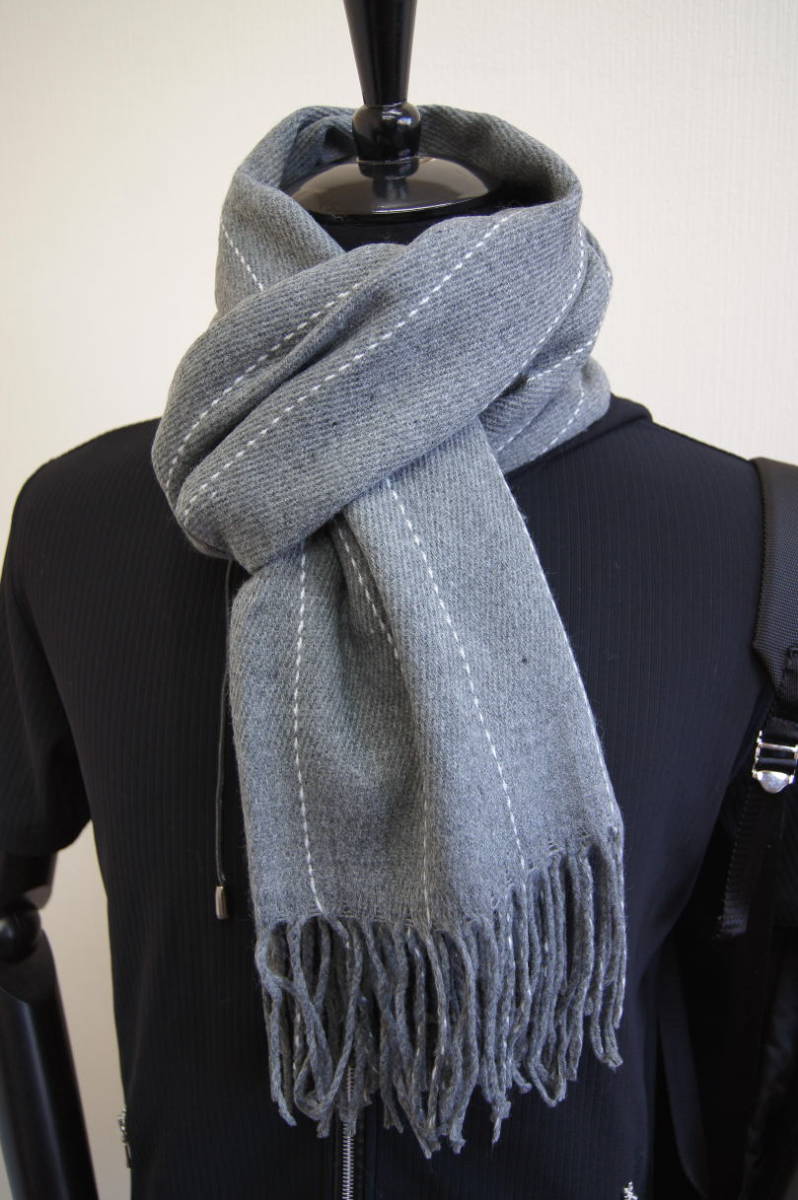 - 最落解除スタート★カシミア100%英国”ストール”新作ストライプ/杢グレー〇*:..azu00men
