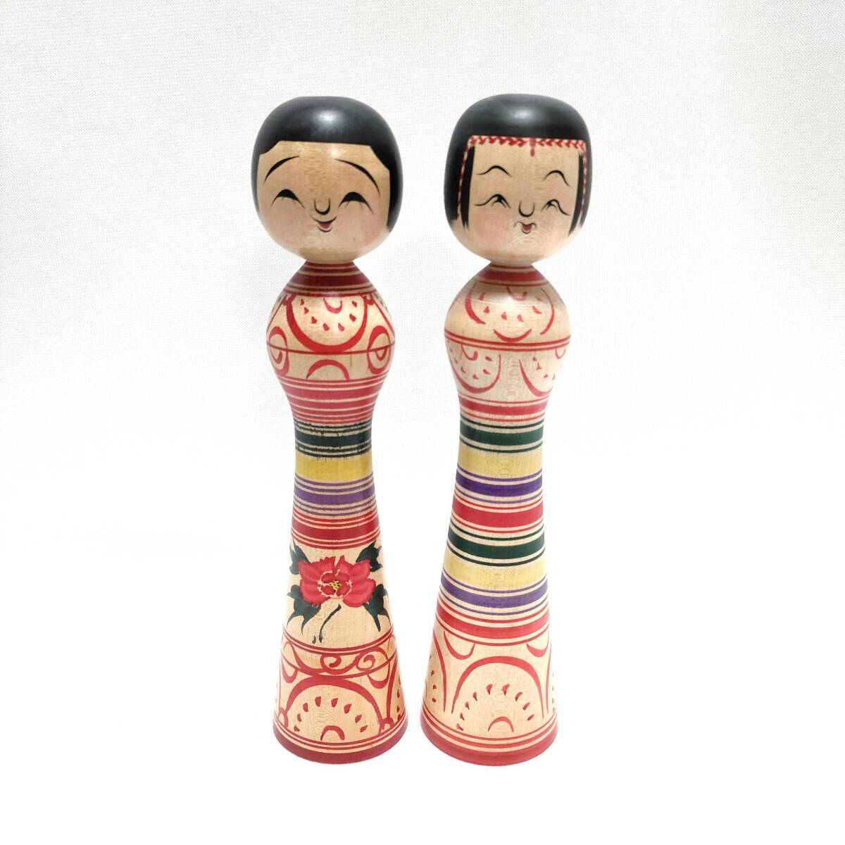- ◆43 こけし【奥瀬鉄則作 2点セット】くじら目/牡丹(花) 当時物 希少 郷土玩具 蔵出し 民芸品 伝統 古い ペア まとめ