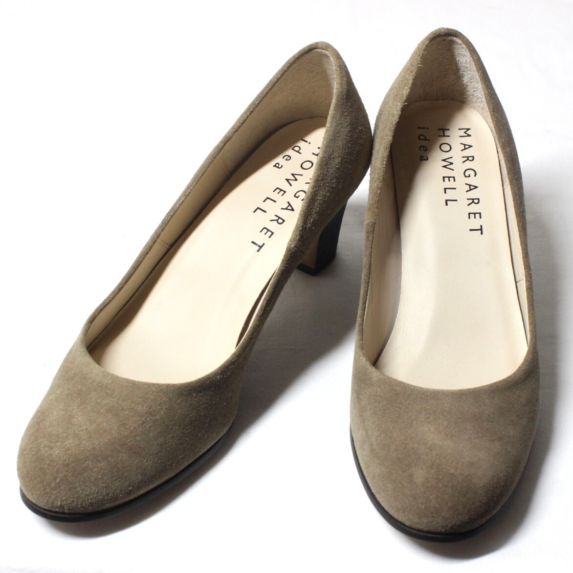 - 09【美品】マーガレットハウエルアイデア パンプス 22 1/2 22.5 スエード チャンキーヒール tqe BRUNOMAGLI イタリア製 ★美品★