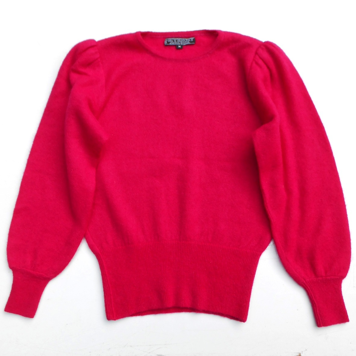 - 良好 正規 '80s GIVENCHY ジバンシィ M モヘアウール混ニット プルオーバートップ ビビットピンク パフスリーブ セーター ヴィンテージ 90s