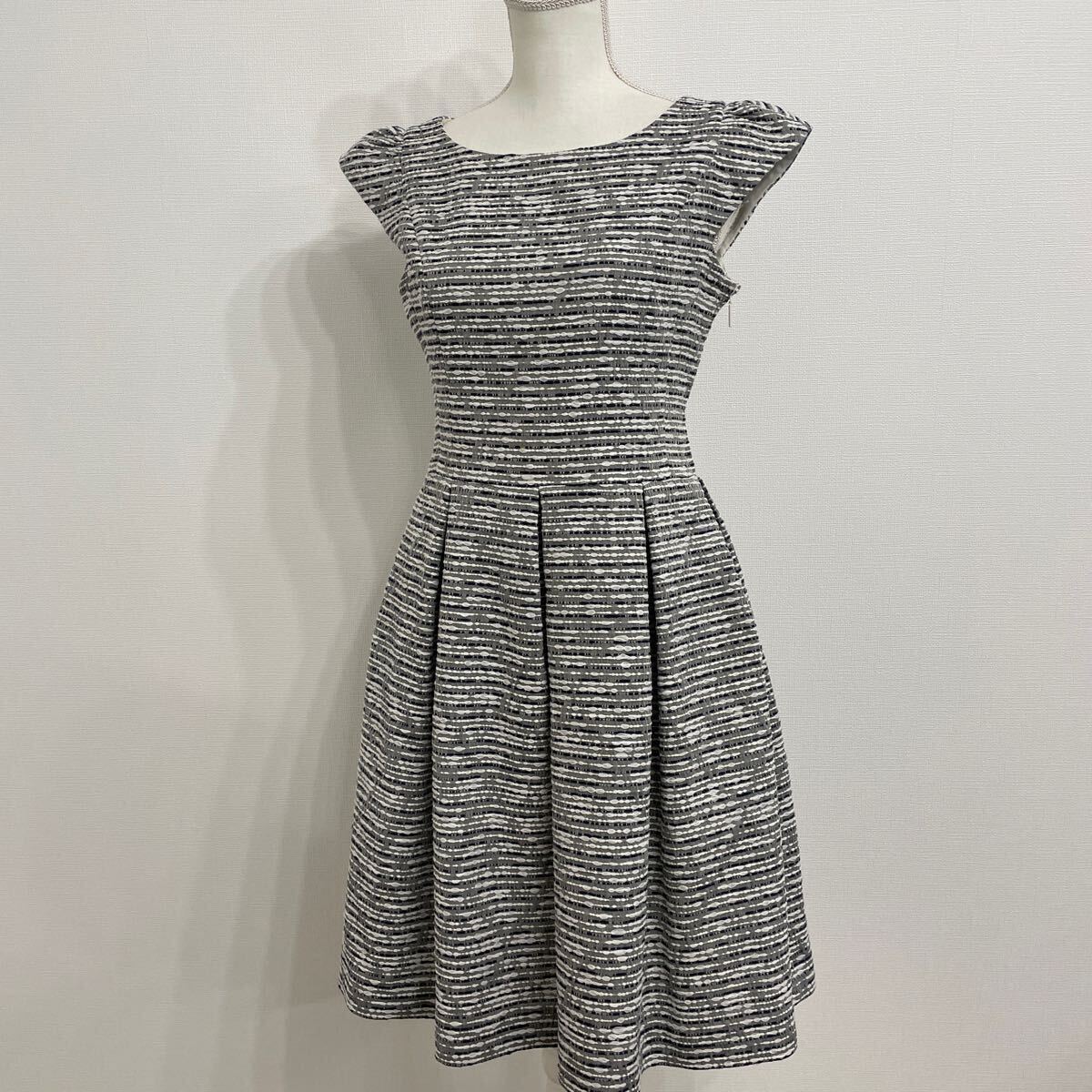 - 【105】ルネ Rene ワンピース 半袖 白黒 ツイード 日本製 プリーツワンピース ドレス フォーマルワンピース フレンチスリーブ