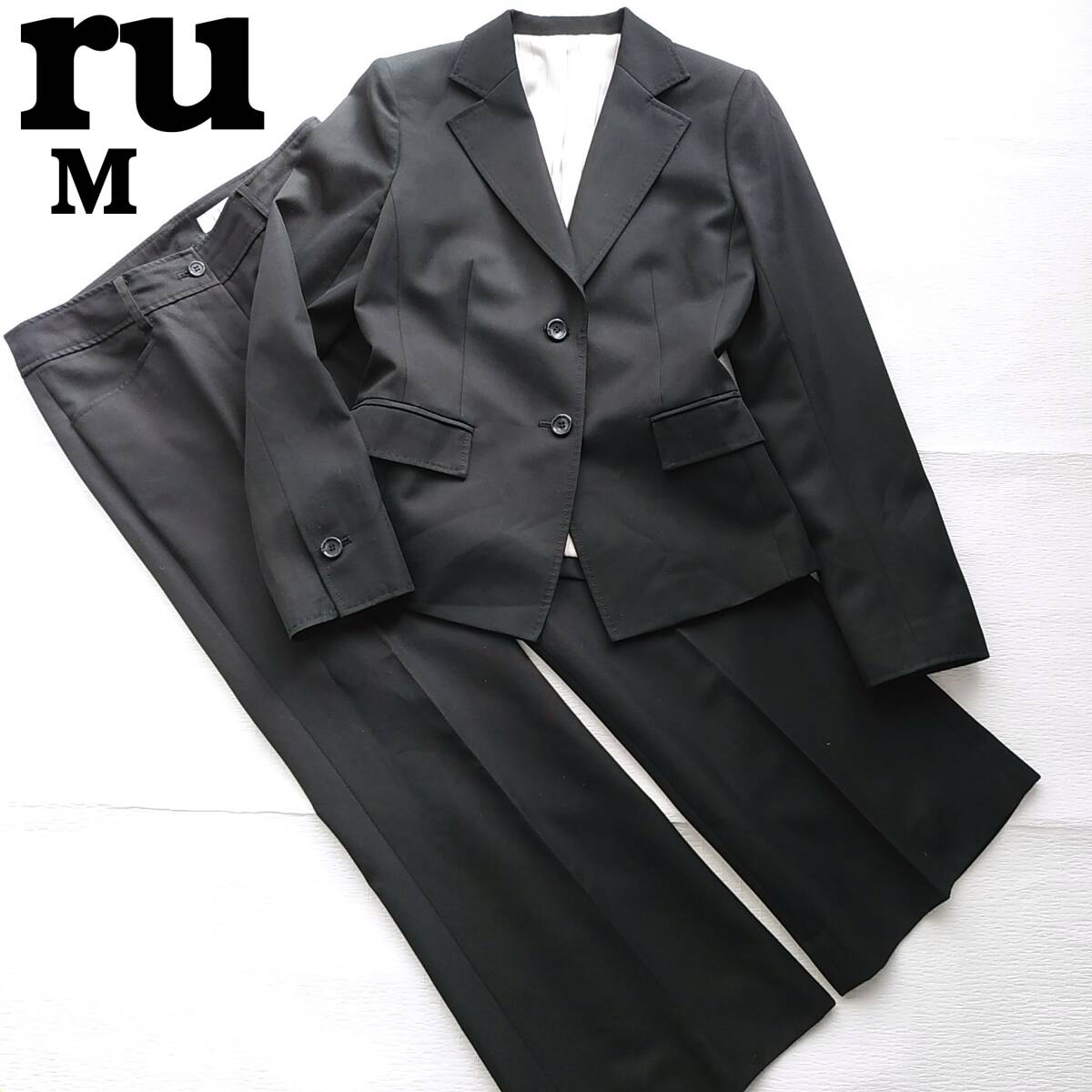 - ru 丸井 パンツスーツ センタープレス カシミヤ混 ストレッチ 黒 レディースM 就活 冠婚葬祭 25fo-01