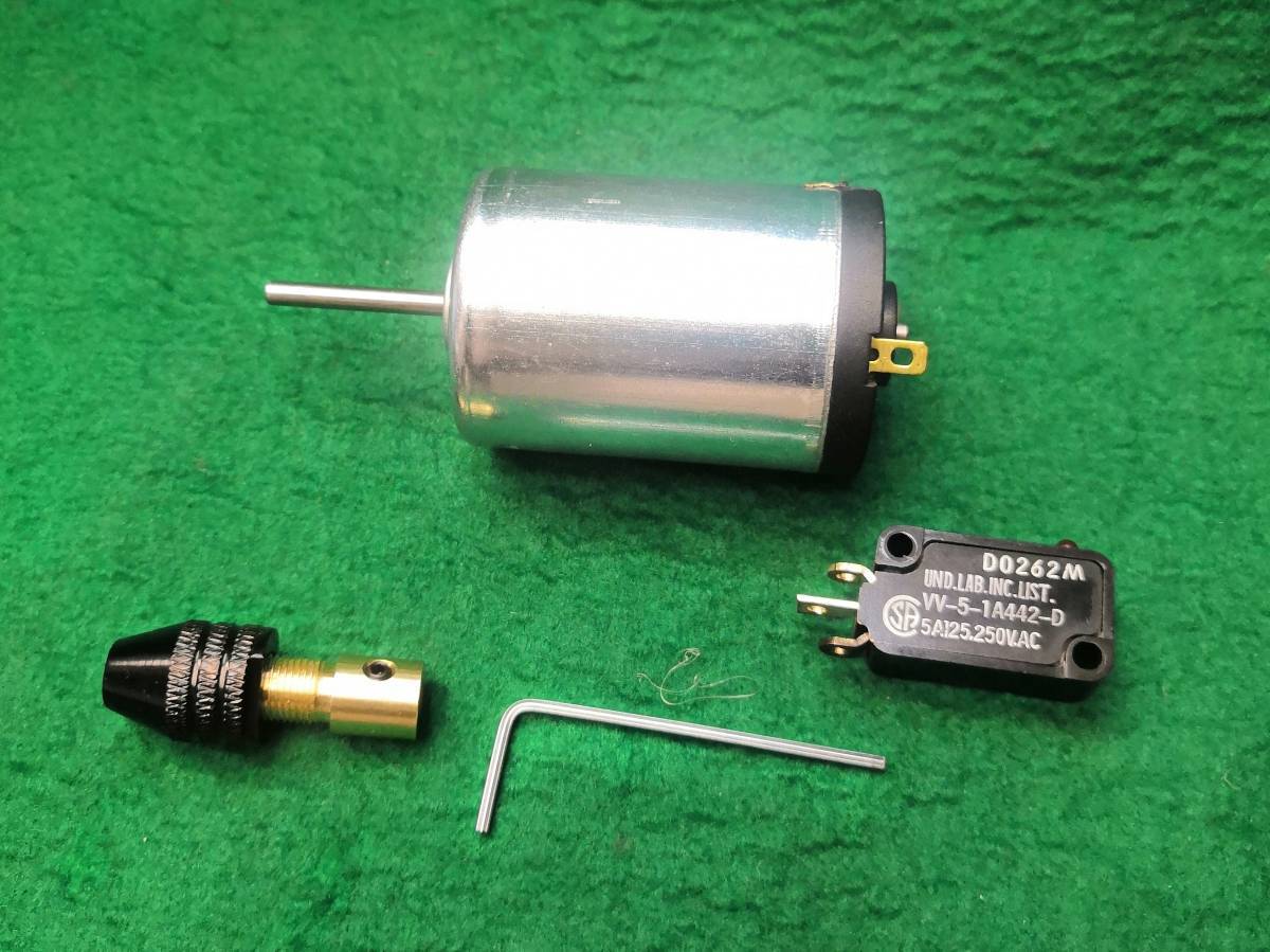 - 小型ドリルキット直流モーターとドリルチャック0.3mm~3.5mmスイッチ一式送料全国一律レターパックプラス600円