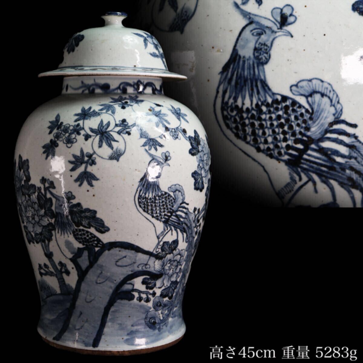 > ◇雅◇ 中国古玩 時代 古染付 孔雀草華図 高さ45cm/5283g 染付壺 蓋付 中国美術 唐物 朝鮮 象嵌 高麗白磁 /FT.25.1 [E155] T
