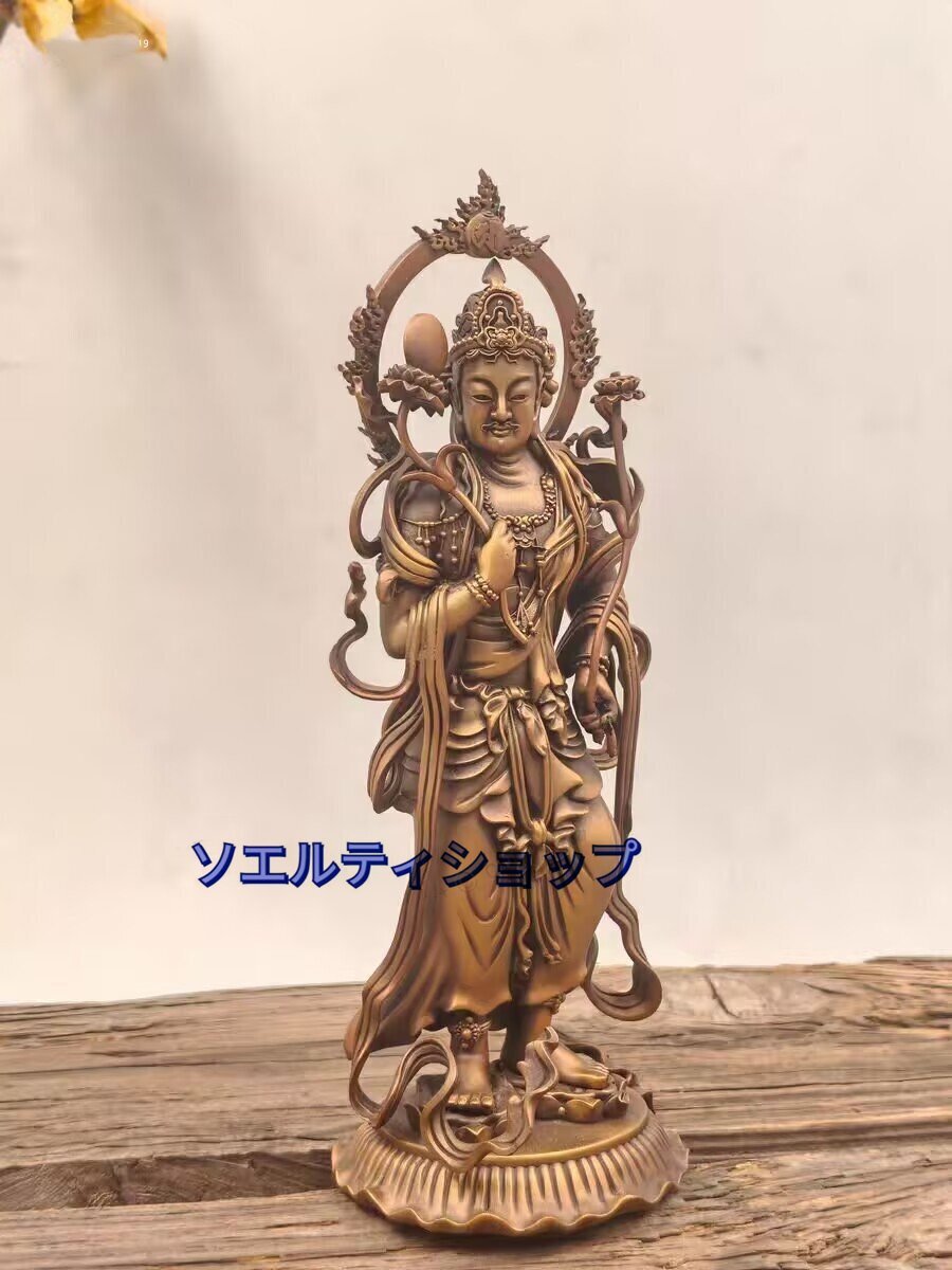 - 仏像 日天 立像 真鍮 内部収納あり 経文入れ 総高16cm