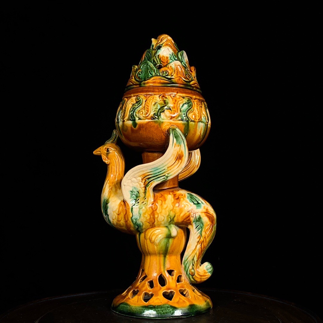 - 『館蔵珍品 唐 古陶瓷品 三彩 鳳形熏香炉』置物 賞物 貴重物品 収蔵品 中国古美術